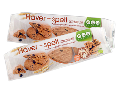 Ecobiscuits lanceert een nieuwe Spelt-haver koek met krenten.